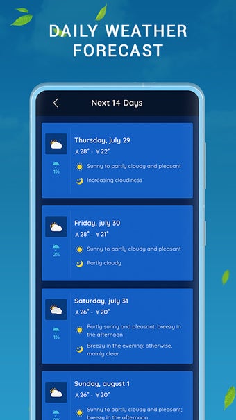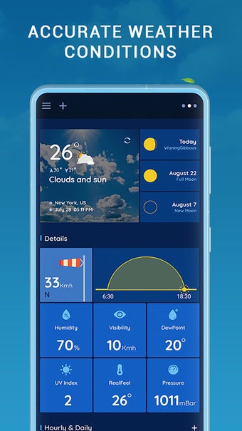 准确的天气预报可帮助您做出正确的决定。您可以查看详细的天气预报,以便在正确的时间了解天气。您还将收到有关下雨和雷暴的通知。